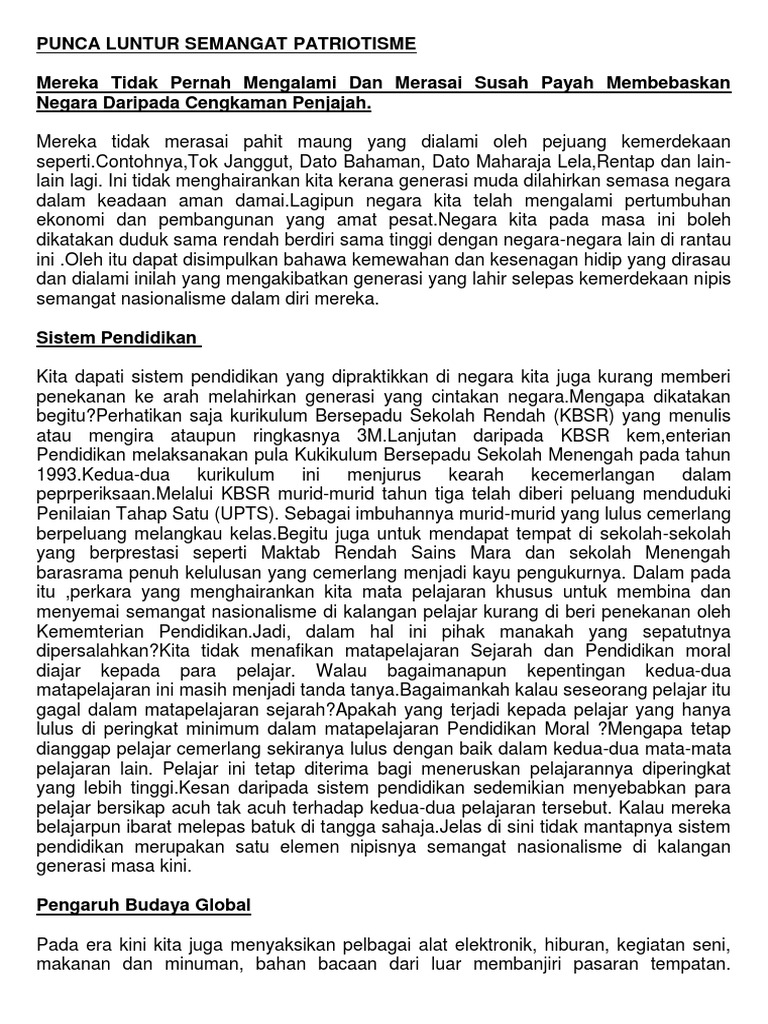 Contoh Soalan Kepada Rakyat Malasia Tentang Patriotik By fu_Yazmin416 06 Jul, 2022 Post a Comment Sejarah Spm Kbat Knowledge Hari Kemerdekaan Bullet Journal Semangat Patriotik 1 Pdf Doc Cara Cara Menunjukkan Semangat Patriotik Pei Lian Tan Academia Edu Kepentingan Semangat Patriotik Pdf Langkah Punca Kepentingan Semangat Patriotisme Pdf Share No comments for "Contoh Soalan Kepada Rakyat Malasia Tentang Patriotik"